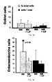 Total relative cell numbers of a specific type were counted as an average of all nuclei counts from a minimum of 3 randomly selected cross-sections of a reconstruct. Goblet cells were counted based on their typical morphology and positive Alcian staining in at least 3 randomly selected slides. Proliferation rates in % were established by counting the number of BrdU or Ki-67-positive nuclei per total epithelial cell nuclei of section. Apoptotic cells were counted in H&E-stained sections (Vagunda, V. et al. 2000Anal. Quant. Cytol. Histol.,22:307–310). Apoptotic bodies and nuclei were determined according to the size and numbers of the fragments. Apoptosis was calculated as percentage of total nuclei per section (Kerr, J F. et al. 1972Br. J. Cancer,26:239–257)