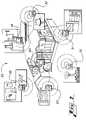 In the described embodiment, thePLCs1–4 have built-in networking capabilities in order to communicate with each other and to allow distributed control. In one embodiment, the present invention comprisesPLCs1–4 with built-in support for communication over awireless transmission medium18, i.e., the signals are carried by electromagnetic waves rather than by physical wiring. Thewireless network12 can be used for enabling system control. In another embodiment, thenetwork12 of the present invention comprises a common wire-basedtransmission media19 such as direct connection, flat cable, plug-in type rack-connection, plug-in type motherboard-connection, fiber-optic cable, twisted-wire pair, or coaxial cable. This embodiment may use known networking technology such as Ethernet and known communication protocols such as TCP/IP to allow the PLCs to easily communicate with higher-level applications running on host computers. It will be appreciated that the present invention may use other accepted networking protocols such as DeviceNet, CanBus, or Can derivatives.