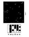 FIG. 4 demonstrates simultaneous bar code detection by reflectivity and analyte quantitation by fluorescence. Each of the images is of a mixture of striped nanorods, as described in Example 4.FIG. 4A is imaged at the wavelength of FITC emission with a bandpass filter.FIG. 4B is imaged at the wavelength of Texas Red.FIG. 4C is a reflectivity image at 400 nm.