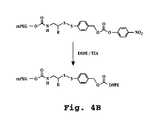 FIG. 21A shows the synthesis of and the decomposition products after thiolytic cleavage of the mPEG-DTB-p-nitroanilide conjugate;