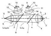 Thedichroic filters7 and8 have anti-reflective coated rear surfaces, thus allowing the light beams Lr to be completely transmitted by thedichroic filter7 and the light beams Lr and Lg to be completely transmitted by thedichroic filter8. Because the inputting of the light beams Lg and Lb is to take place with virtually no loss of light, thedichroic filters7 and8 are provided with special thin-layer systems, which act as long-pass filters.
