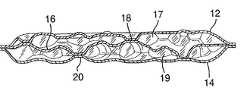 Outer film layer56 is attached to an adjacentinner film layer60 atcircular connection sites64 andelongated connection sites66. Identical reference numerals are used to refer to corresponding connection sites betweenouter film layer58 andinner film layer62. Inner film layers60 and62 are attached to one another atcircular connection sites68 andelongated connection sites70.