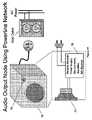 FIG. 25 shows how audio information, in particular music, can be transmitted via a digital communications circuit through power lines, thereby enabling an audiooutput node unit76 containing aSpeaker77 as well asinterface circuit78.Interface circuit78 would have the ability to receive and transmit information as well as convert a digital audio stream to an amplified signal capable of drivingSpeaker77.Interface circuit78 may also contain some form ofremote control receiver79 which could be either infrared or wireless. With this remote control capability included,interface circuit78 may also contain a transmit capability such that any control requests can be forwarded to similar audio output nodes and/or to the source of the audio information via the powerline network.