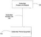 Subscriberaccess line module130 manages the association between asubscriber access line135 and the subscriber access line identity that identifies thesubscriber access line135. In one embodiment, subscriberaccess line module130 includes a Master Distribution Frame (MDF). In another embodiment, subscriberaccess line module130 includes a Digital Access Line Access Module (DSLAM). In yet another embodiment, subscriberaccess line module130 includes a Digital Loop Carrier (DLC). In a different embodiment, subscriberaccess line module130 includes Cable Headend equipment, such as a Cable Modem Termination System (CMTS) or a Cable Data Modem Termination System (CDMTS). In another embodiment, subscriberaccess line module130 includes radio network access equipment, such as base stations and base station controllers (BSC).