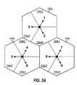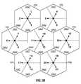FIG. 3A shows an exemplary subband assignment to achieve frequency orthogonality for a cluster with 3 cells, where each cell includes 3 sectors (i.e., a 9-sector 3-cell cluster). Each of the 9 sectors in the cluster is assigned one of 9 subband sets (which may be formed, for example, as shown in Table 2). The subband set assigned to each sector is indicated by the numeric reference next to the arrow inFIG. 3A. Each sector would then transmit its pilot on only the subbands in its assigned set. The 9 sectors in the cluster may simultaneously transmit their pilots on 9 disjoint sets of subbands while achieving orthogonality in the frequency domain and avoiding interference.