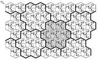 FIG. 5 shows anexemplary system layout500 whereby a different scrambling code is assigned to each 7-cell cluster. Each cluster in the layout is outlined by a thick solid line. One exemplary cluster is shown with seven shaded cells. For this embodiment, the seven cells in each cluster are assigned different subband sets (which are labeled 1 through 7), and the three sectors in each cell are assigned different orthogonal codes (which are labeled A, B, and C). The pilot transmission from each sector in the layout can be identified by (1) the subband set assigned to the cell in which the sector belongs, (2) the orthogonal code assigned to the sector, and (3) the scrambling code assigned to the cluster in which the sector belongs. Other system layouts with different assignments of subbands, orthogonal codes, and scrambling codes may also be developed, and this is within the scope of the invention.