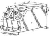 A known gas dischargelamp power supply20 is shown inFIGS. 12 and 13. Thepower supply20 has abaseplate22, a pair ofopposed side walls24,26 and a pair ofend walls28,30. Theside walls24,26 are substantially perpendicular to theend walls28 and30 and all of the walls24-30 are substantially perpendicular to thebaseplate22. Acover32 is fastened over the walls24-30 to form a housing orenclosure34.Input terminals36,38 are provided for connecting respectively a black wire and a white wire of a line voltage source, for example, 120 VAC. Aground terminal40 is provided for connecting to a ground wire of the line voltage source and is connected to an equipment ground, that is, a green wire ground, within thepower supply20.