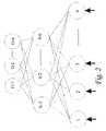 The term weight is a general term in the art used to describe the mathematical operation that is performed on each datum at each node at one layer before it is inputted into a node at a higher layer. The data atinput layer node1, for example, will be operated on by a function that contains at least one factor that is determined by the training process. In general this factor, or weight, is different for each combination of an input node and hidden layer node. Thus, in the example above where there were 100 input nodes, 12 hidden layer nodes and 1 output node, there will in general be 1,212 weights which are determined by the neural network program during the training period. An example of a function used to operate on the data from one node before it is input to a higher level node is the sigmoid function: