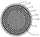 Theconductor7 consists of stranded copper wires. To prevent longitudinal water penetration and facilitate repair, gaps in theconductor7 are filled with a hydrophobic water-blocking compound.