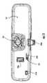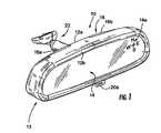 Optionally, the cap portion or portions and the circuit board or boards of the present invention may also or otherwise include other accessories, such as microphones51 (such as shown inFIGS. 5 and/or27). The microphones may comprise analog microphones or digital microphones or the like, and may be positioned at or aligned with one or more openings formed in the top and/or bottom of the cap portion or the mirror holder. The microphones, such as microphones of the types disclosed in U.S. Pat. Nos. 6,243,003; 6,278,377; and/or 6,420,975, and/or in PCT Application No. PCT/US03/308877, filed Oct. 1, 2003 by Donnelly Corp. et al. for MICROPHONE SYSTEM FOR VEHICLE, may be provided for interfacing with a vehicle telematics system or the like. Optionally, the cap portion or portions and the circuit board or boards may also or otherwise include other accessories, such as a telematics system, speakers, antennas, including global positioning system (GPS) or cellular phone antennas, such as disclosed in U.S. Pat. No. 5,971,552, a communication module, such as disclosed in U.S. Pat. No. 5,798,688, a voice recorder, a blind spot detection system, such as disclosed in U.S. Pat. Nos. 5,929,786 and/or 5,786,772, and/or U.S. patent application Ser. No. 10/427,051, filed Apr. 30, 2003, now U.S. Pat. No. 7,038,577; and Ser. No. 10/209,173, filed Jul. 31, 2002, now U.S. Pat. No. 6,882,287, transmitters and/or receivers, such as for a garage door opener or a vehicle door unlocking system or the like (such as a remote keyless entry system), a digital network, such as described in U.S. Pat. No. 5,798,575, a high/low headlamp controller, such as a camera-based headlamp control, such as disclosed in U.S. Pat. Nos. 5,796,094 and/or 5,715,093, a memory mirror system, such as disclosed in U.S. Pat. No. 5,796,176, a hands-free phone attachment, a video device for internal cabin surveillance (such as for sleep detection or driver drowsiness detection or the like) and/or video telephone function, such as disclosed in U.S. Pat. Nos. 5,760,962 and/or 5,877,897, a remote keyless entry receiver, a seat occupancy detector, a remote starter control, a yaw sensor, a clock, a carbon monoxide detector, status displays, such as displays that display a status of a door of the vehicle, a transmission selection (4wd/2wd or traction control (TCS) or the like), an antilock braking system, a road condition (that may warn the driver of icy road conditions) and/or the like, a trip computer, a tire pressure monitoring system (TPMS) receiver (such as described in U.S. Pat. Nos. 6,124,647; 6,294,989; 6,445,287; 6,472,979; and/or 6,731,205), an ONSTAR® system and/or the like (with all of the above-referenced patents and PCT and U.S. patent applications being commonly assigned to Donnelly Corporation, and with the disclosures of the referenced patents and patent applications being hereby incorporated herein by reference in their entireties). The accessory or accessories may be positioned at or on the cap portions and thus positioned at or within the mirror holder and may be included on or integrated in a printed circuit board positioned within the mirror holder.