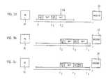 FIGS. 3ato3cshow two examples of chronological sequences of data transmission from the evaluation unit to the position measuring system for the case of a request for position data during the actual transmission of non-time-critical data according to the present invention;