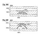FIG. 33A shows a simplified cross-sectional view of still another electrostatically actuated valve structure in a nonactuated state.FIG. 33B shows a simplified cross-sectional view of the valve structure ofFIG. 33A in an actuated state.
