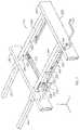 Referring toFIGS. 10A-10C, each of the support rails242 includes a pair oftubes266 having a closedupper wall266, closed sidewalls268, and a closedlower wall269. Agear rack270 is disposed between thetubes266. Thegear rack270 includes awall portion271 and agear portion272. Thewall portion271 may be formed from a steel plate extending throughout the entire length and depth of thetubes266, and thegear portion272 projects downwardly from each of the closedlower walls269. Thegear rack270 may be integrally formed with the steel plate or may be attached to the steel plate by welding or the like. As can be seen inFIG. 10C, the upper portion of the steel plate is flush with theupper walls267 of thetubes266, and the lower portion of the steel plate is flush with thelower walls269 of thetubes26. Thegear rack270 engages with an associated gear of thedrive mechanism256 which is to be described hereafter.