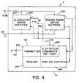 InFIG. 4, wire feeder F receives power from leads50(N). This drives thepower bridge230 and directs the coded information toidentification detector232.Bridge232 includes input digital coded information online270 and has anoutput274 on which the code in the form of a signal is received from the center tap ofdivider276. The coded signal inline274 is directed to the identification detection andcomparator280 to set the code for wire feeder F in accordance with the code received on line50(N) from the connected power source N. The set code is used in thetransmitter section282 oftransceiver130 to producecoded signal132 for controlling a parameter and/or a condition of the associated connected powersource N. Transceiver130 also has a receivingstage284 which is not used in practice, but which could be used for receiving coded information from power source N connected to the wire feeder. By using the circuit shown inFIG. 4 the identification of the power source described inFIG. 2 is implemented in practice.