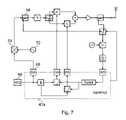 In order to resolve this problem, theswitch32 receives a reference signal from areference signal source76 instead of a signal from the path leading to theRFPA26. TheDPF42acan direct theswitch32 to send the signal fromreference signal source76 to theDPF42a. TheDPF42ais given knowledge of the characteristics of the signal produced by thereference signal source76 and is therefore able to measure the errors that arise in the down-conversion, filtering and analogue to digital conversion processes that are performed in the path leading from theswitch32 to theDPF42a. TheDPF42auses these error measurements to calibrate samples of the RFPA output signal that are obtained throughswitch32. The calibrated samples can then be compared with the baseband signal from theinformation source66 and any discrepancies that appear can be attributed to residual distortion in the RFPA output signal. In most other respects, the system shown inFIG. 8 is the same as that described with reference toFIG. 1.
