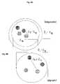 Due to the labelling of more than one element with the same spectral signature (for the example seeFIG. 2), the correct topological analysis is greatly impaired. Analogous problems occur wherever it is not possible to label all elements differently, especially where certain symmetries occur. This, however, is the case for many biologically important BioMolecular Machines or BioMolecular Modules, for example nuclear pores, ion-channels, or proteasomes. Referring toFIG. 2A if all the elements are labelled with different spectral signatures, the SPDM procedure allows to determine the topology (position and mutual distances of theelements1,2,3,4) also in the case that the mutual distances are smaller than the FWHM. Referring toFIG. 2B, assuming a symmetrical arrangement of the element pairs, each pair labelled withspectral signature specs1, i.e. theelements1aand1blabelled withspectral signature specs1, theelements2aand2blabelled withspectral signature specs2, the SPDM —determined fluorescence intensity gravity centers or also called barycenter or diffraction image maxima coincide in the center denoted with x independently of the actual diameter of the minimum enveloping volume.