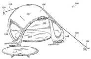 With your right hand fold the top semi circle down past the vertical position and lightly apply downward pressure with your left hand while still holding resilientflexible frame sections165 and167 to preventcanopy106 from unfolding.