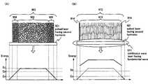 On the other hand, when it is assumed that thebeam spot11 emitted from the continuous wave YAG laser having the harmonic has a rectangular shape, that the length of the minor axis is LX2, and that the length of the major axis is LY2, in order to satisfy the condition of the energy density described above, LX2is set in the range of 20 μm to 100 μm. For example, it is appropriate that when LX2is 10 μm, LY2is set to approximately 100 μm.