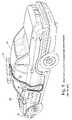 While this design is highly reliable and has worked well for a number of years, it has the disadvantage that the resulting multi-conductor bundle of cables must be routed throughout the vehicle to the devices being controlled.FIG. 2 shows one example of what can be involved in installing conventional light bars and associated control equipment in a standard conventional police interceptor-type vehicle. Generally, it is typically necessary for the after-market installer to run a multi-conductor wiring harness from the control interface unit on the console or dashboard through the vehicle in between the headliner and inside of the vehicle roof to the light bar. AsFIG. 2 illustrates, this may involve an extensive amount of disassembly of the vehicle including, but not limited to, removal of seats, dashboard portions and the like. All of these operations are time consuming and therefore are not only expensive but may delay operational use of the vehicle by emergency response personnel. Such cable routing can be costly due to the need to conceal the cables within headliners and other interior portions of the vehicle. Such installation may require a number of hours of work by a skilled technician. It is not unusual for initial installation efforts to be unsuccessful, requiring the partial or entire disassembly/reassembly process to be repeated in order to relieve crimped cables, bad connections, cosmetic bumps and blemishes, etc. If such wiring fails after installation, the same sort of disassembly process may be required to repair or replace the wiring harness. This can result in downtime during which the vehicle cannot be used. The same type of extensive customization process may be required for other emergency type vehicles such as tow trucks, volunteer fire department vehicles, emergency medical vehicles and the like.