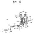 On the other hand, as shown inFIG. 10B, when the firstpower transmitting gear159 is rotated in the counterclockwise direction by the paper-feed/scanner driving motor161, i.e., the counterclockwise direction shown in an arrow of dotted line within the firstpower transmitting gear123 inFIG. 6, theswing gear181 engaged with the firstpower transmitting gear159 is rotated in the clockwise direction, so that theswing lever184 is rotated in the clockwise direction by a momentum generated by the rotation of theswing gear181.