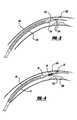 FIG. 3 is a diagrammatic, partial, enlarged, cross-sectional view of a stent delivery system catheter in an irregular and narrowed lumen of a curving vessel;