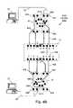 FIG. 4B depicts an exemplaryfirst data system21 being connected tocontacts43A, anddata system22 being connected tocontacts43B. A connection may be established betweendata systems21 and22 by either utilizingswitches14/7 and14/8 or corresponding wires in the cord that connects between the RJ45 connectors, of which (in this example) female side is soldered to contacts sets41 and42. Similarly, additional three pairs of data systems might be connected toPCB40, by connecting one from each pair of data systems tocontacts44A,45A and46A, respectively, and their corresponding data systems tocontacts44B,45B and46B, respectively. For example, a data system connected to44A is allowed to exchange data with a corresponding data system connected to44B etc.