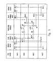 In this example, stubs68,69,80 and81 (which are located along the conductors that are connected to contacts <3,5> of the RJ45 connector) are 8 mili-inch wide (i.e. narrower than 0.01λ) and may be 0 to 5 cm long (i.e. shorter than 0.125λ), spaced 8 mili-inch apart from each other (i.e. a distance less than 0.01λ) and located as close as possible to the contacts of the RJ45 connectors.Stubs82 and83 (inFIG. 4D), which are located along the conductors that are connected to contacts <4,6> of the RJ45 connector, are 8 mili-inch wide (i.e. narrower than 0.01λ) and may be 0 to 5 cm long (i.e. shorter than 0.25λ), spaced 8 mili-inch apart from each other (i.e. at distance less than 0.01λ) and located as close as possible to the contacts of the RJ45 connectors.Stubs74 and75 (inFIG. 6), which are located along the conductors that are connected to contacts <3,4> of the wiring block, are 8 mili-inch wide (i.e. narrower than 0.01λ) and may be 0 to 5 cm long (i.e. shorter than 0.25λ), spaced 8 mili-inch apart from each other (i.e. at distance less than 0.01λ) and located as close as possible to the contacts of the RJ45 connectors.Stubs70 and71 (inFIG. 6), which are located along the conductors that are connected to contacts <3,8> of the RJ45 connector, are 8 mili-inch wide (i.e. narrower than 0.01λ) and may be 0 to 5 cm long (i.e. shorter than 0.25λ), spaced 8 mili-inch apart from each other (i.e. at distance less than 0.01λ) and located as close as possible to the contacts of the RJ45 connectors.Stubs84 and85 (inFIG. 4D), which are located along the conductors that are connected to contacts <6,8> of the RJ45 connector, are 8 mili-inch wide (i.e. narrower than 0.01λ) and may be 0 to 5 cm long (i.e. shorter than 0.25λ), spaced 8 mili-inch apart from each other (i.e. at distance less than 0.01λ) and located as close as possible to the contacts of the RJ45 connectors.Stubs78 and79 (inFIG. 6), which are located along the conductors that are connected to contacts <3,7> of row B in the switching module, are 8 mili-inch wide (i.e. narrower than 0.01λ) and may be 0 to 5 cm long (i.e. shorter than 0.25λ), spaced 8 mili-inch apart from each other (i.e. at distance less than 0.01λ) and located as close as possible to the contacts of the switch.Stubs90 and91 (inFIG. 4D), which are located along the conductors that are connected to contacts <3,8> of row A in the switching module, are 8 mili-inch wide (i.e. narrower than 0.01λ) and may be 0 to 5 cm long (i.e. shorter than 0.25λ), spaced 8 mili-inch apart from each other (i.e. at distance less than 0.01λ) and located as close as possible to the contacts of the switch.Stubs88 and89 (inFIG. 4D), which are located along the conductors that are connected to contacts <5,6> of row A in the switching module, are 8 mili-inch wide (i.e. narrower than 0.01λ) and may be 0 to 5 cm long (i.e. shorter than 0.25λ), spaced 8 mili-inch apart from each other (i.e. at distance less than 0.01λ) and located as close as possible to the contacts of the switch.Stubs61 and62 (inFIG. 6), which are located along the conductors that are connected to contacts <5,8> in the RJ45 connector, are 8 mili-inch wide (i.e. narrower than 0.01λ) and may be 0 to 5 cm long wide (i.e. shorter than 0.25λ), spaced 8 mili-inch apart from each other (i.e. at distance less than 0.01λ) and located as close as possible to the contacts of the RJ45 connector.Stubs86 and87 (inFIG. 4D), which are located along the conductors that are connected to contacts <4,7> in the RJ45 connector, are 8 mili-inch wide (i.e. narrower than 0.01λ) and may be 0 to 5 cm long wide (i.e. shorter than 0.25λ), spaced 8 mili-inch apart from each other (i.e. at distance less than 0.01λ) and located as close as possible to the contacts of the RJ45 connector.Stubs66 and67 (inFIG. 6), which are located along the conductors that are connected to contacts <1,3> in the RJ45 connector, are 8 mili-inch wide (i.e. narrower than 0.01λ) and may be 0 to 5 cm long (i.e. shorter than 0.25λ), spaced 8 mili-inch apart from each other (i.e. at distance less than 0.01λ) and located as close as possible to the contacts of the RJ45 connector.Stubs72 and73 (inFIG. 6), which are located along the conductors that are connected to contacts <2,6> in the RJ45 connector, are 8 mili-inch wide (i.e. narrower than 0.01λ) and may be 0 to 5 cm long (i.e. shorter than 0.25λ), spaced 8 mili-inch apart from each other (i.e. at distance less than 0.01λ) and located as close as possible to the contacts of the RJ45 connector. Stubs76a,76b,77aand77b(inFIG. 6), which are located along the conductors that are connected to contacts <2,4> of rows A and B, respectively, of the switching module, are 8 mili-inch wide (i.e. narrower than 0.01λ) and may be 0 to 5 cm long (i.e. shorter than 0.25λ), spaced 8 mili-inch apart from each other (i.e. at distance less than 0.01λ) and located as close as possible to the contacts of the switching module.