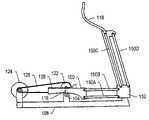 The interaction betweenroller104 andcam device102 may allow relative horizontal displacement offootpads128 with a restoring force. As the user variably applies force onfootpads128, force may be transmitted throughrollers104 to crankmembers116. In certain embodiments, as crankmembers116 rotate, the crank members may impart force to footmembers100 throughroller104 andcam device102, particularly at the end or beginning of a step or stride by the user. These forces may assist in changing direction offoot member100 at the end or beginning of a step. In certain embodiments, these forces may assist in returning a user's foot to a neutral position during use. In an embodiment, the user determines and selects the actual stride length asfoot members100 are not pivotally coupled to crank members and the foot members are allowed to translate relative to the crank members. The user may essentially be allowed to “instantaneously” or “dynamically” change his/her stride length by imparting variable forces to footmembers100. The user may selectively impart forces (e.g., at a beginning or an end of a stride) that vary the path (e.g., the path length or the shape of the path) offoot members100. Thus, the user may vary his/her stride so that the path offoot members100 is varied. In certain embodiments,cam device102 may assist in imparting forces that change the direction offoot members100.