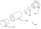 As is shown byblock202, thedistal portion122 of thefirst end cap110 is fitted within thehollow center150 of thecentral member140 so that theproximate surface144 of thecentral member140 is adjacent to or touching theinternal surface118 of thefirst end cap110. Theconductive spheres190 are then positioned within thehollow center150 of thecentral member140 and within a portion of the cylindrical gap128 (block204). Thedistal portion172 of thesecond end cap160 is then fitted within thehollow center150 of thecentral member140, so that thedistal surface148 of thecentral member140 is adjacent to or touching theinternal surface168 of the second end cap160 (block206).