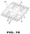 FIG. 18 is an exploded view of theorbiter42 assembly.Orbiter42 assembly may include four upper friction shoes46 and four lower friction shows46, which are all attached toorbiter frame47. Orbiter contact shoe is housed withinorbiter frame47 and spring loaded via orbiter contact shoeinternal spring48. Orbiter contact shoeinternal spring48 ensures maximum conduction whenorbiter contact shoe45 makes physical contact with contact plates37 (not shown) on distribution plate43 (not shown). Orbiter springs41 may be pivotally engaged toorbiter42, allowing orbiter's free movement within the distribution plate. Upper orbiter contact shoes46 may engage the lower surface of an encased housing (not shown) and preventorbiter42 from bouncing off the surface ofdistribution plate43.