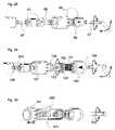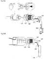 FIGS. 8 and 9 illustrate two types of axes.FIG. 8 illustrates a rotary mechanism where the rotating member spins about an axis that is stationary relative to the body supported member, by means of a bearing assembly.FIG. 9 illustrates a rotary mechanism whereby the axis spins on a bearing assembly. Both figures illustrate the ability to change attachments.