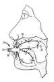 Mouthpiece24 can preferably include ahandle30 which allows a user to grip the mouthpiece, and can contain an electrical power supply, such as a battery, and a control switch. In one embodiment, the handle also includes apathway31 for delivering or removing substances from the oral cavity. For example,pathway31 can provide for the entrance and/or egress of air, the delivery of treatment agents and/or drugs, and water evacuation.