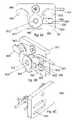 Aplastic detent205 may be provided to hold thecartridge104 firmly in place when installed. A plurality ofelectrical contacts206 provide an electrical path from thecartridge104 to theelectronics module103 as thecartridge104 is installed. As thecartridge104 is installed it also presses theejector lever106 down causing adrive gear207 and drivemotor208 to engage aspool gear405 inside of thecartridge104.