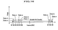 FIG. 16 shows a chart that shows a separative distribution of sub-carriers to which identically same data are allocated in spread spectrum of plural sub-carriers.