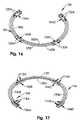 As indicated inFIG. 200,spring1442 continuously urges the drive members into binding engagement with the needle. However, upon release of thetrigger1406a, which permits the shuttle to return to its starting position due to the urging of the extension spring1436, theneedle engaging members1440 will compress theelastomeric springs1442 and will pivot and move transversely withincavities1420 in the direction of the arrows to engage the needle in the manner shown inFIG. 201. With the needle engaging members in this position, the members will slide relative to the needle permitting the needle to remain in place when thetrigger1406ais released and allowing theshuttle member1414 to move counterclockwise to the position illustrated inFIG. 194. When thetrigger1406bis once again actuated, theshuttle member1414 will again move in a clockwise direction as illustrated inFIG. 195 causing theneedle engaging members1440 to once again grip thesuturing needle1422 due to the urging of the elastomeric springs1442. This gripping of the needle will again cause it to advance in a clockwise direction along theneedle guide1416 toward its third advanced position (not shown). As the process is repeated, the needle will continue to advance in a clockwise direction along theneedle guide1416 so that the suturing can be controllably and efficiently completed.