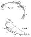 In a manner now to be described, movement of theshuttle1414 along theshuttle track1413 causes concomitant, controlled movement of thesuture needle1422 alongneedle guide1416. As previously mentioned,shuttle member1414 is provided with a plurality of strategically shaped, circumferentially spacedcavities1420. Disposed within each of thesecavities1420 is a uniquely configured needle engaging member1440 (seeFIG. 199) that includes first and second, rounded ends1440aand1440band aneedle receiving opening1440cfor closely receiving theneedle1422.Members1440 are adapted for both transverse and pivotal movement within the cavity in response to movement of the1414 shuttle between its first and second positions. This novel movement of themembers1440 within thecavities1420 is illustrated inFIGS. 200 and 201 of the drawings. As shown inFIG. 200, also partially disposed withincavities1420 are biasing means, shown here as compressible and expandableelastomeric springs1442, which act uponmembers1440.Springs1442, which are of a generally flat configuration are carried within smaller cavities segments1444 which communicate withlarger cavities1420 in the manner illustrated inFIGS. 197,200 and201.