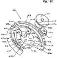 Referring now toFIG. 165 of the drawings, as heretofore described, rotation of the alternativecentral gear414 in desired direction determined by the orientation of theneedle50 in the fixed way404) by driving of thecentral bevel gear415C produces a corresponding rotation of the alternateconcave rotors416C in the opposite direction to drive theneedle50 in that opposite direction. In like manner, referring toFIG. 166 of the drawings rotation of the conicalcentral gear415 in a selected direction imparts rotation of the respective alternatetoothed rotors416B in the opposite direction to drive theneedle50 in that opposite direction in the manner and for the purpose described above.
