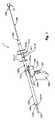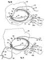 FIG. 41 is a perspective view of the cyclic suturing and knot-tying operating device illustrated inFIGS. 1-4, more particularly illustrating typical cable arrangements extending through the transmission tube, the extension tube and the transition guide cone from the lever to the crescent, for articulating the crescent on the end of the transition guide cone and controlling operation of the needle driver, the needle drive direction setting plate and the fixed way direction setting plate in the crescent.