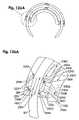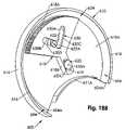 Referring again toFIGS. 167 and 168 of the drawings aflexible rotor515 includes a flexible outer band51 SA, with flexible spokes5151B extending from the flexibleouter band515A inwardly in a spiral pattern to arotor shaft opening516A. As further illustrated inFIGS. 173 and 174 the flexibleouter band515A of theflexible rotor515 includes a curvedrotor contact area515C, bounded by parallel, extending rotor shoulders515D, whichrotor shoulders515D contact thecorresponding wall shoulders515F of thedepression forming wall511 as theflexible rotor515 rotates inside thedisc510, as further illustrated inFIG. 174. Accordingly, in a preferred embodiment of this aspect of the invention the rotor shoulders515D and the corresponding wall shoulders515F are provided with a smooth surface treatment such as teflon or the like, which is self-lubricating and causes minimum resistance to rotation of theflexible rotor515 in thedisc510. Furthermore, in another preferred embodiment of the invention therotor contact area515C is provided with an abrasive or textured material for securely, yet releasably, engaging theneedle50 and driving theneedle50 around thefixed way504 responsive to rotation of theflexible rotor515, as illustrated inFIGS. 173 and 174 of the drawings.