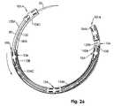 Referring toFIGS. 117 and 117A of the drawings an arcuate driver is generally illustrated byreference numeral230 and includes a pair of downwardly-extendingdriver tabs230D, each having adriver tab extension230L and a driver tabweld attachment groove230M, provided on thedriver tab extension230L. The driver tabweld attachment grooves230M are designed to receive one end of the pair ofdrive cables1247, illustrated inFIG. 114 and illustrated in phantom inFIG. 117A, for welding the control cables to the respectivedriver tab extensions230L at theweld beads230P and controlling incrementation of thedriver230 throughout the length of therespective locking slots210E, as hereinafter further described. Three sets of bearingslots230A are also provided in thedriver230 and corresponding, oppositely-disposedbearing slot walls230G project into the bearingslots230A for pivotally receiving thelever225D in each of the forked blades225 (not illustrated), as further hereinafter described.