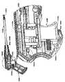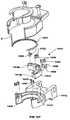 FIG. 42 is a perspective view of the handle element of the operating device illustrated inFIGS. 1-4, more particularly illustrating the handle trigger, housing and cradle elements, the cradle of which receives the transmission tube, illustrated in phantom.