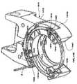 FIG. 6 is an exploded view of the various fixed and rotatable drive components of the crescent for driving the needle in the crescent and determining the direction of needle rotation responsive to operation of corresponding operating components or elements in the operating device.