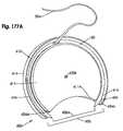It will be appreciated from a consideration of the drawings that selected counterclockwise and clockwise rotation of thecrank622 and thecrank pin622A responsive to corresponding operation of the engageddrive bevel gear631A and pivotpin bevel gear631B, effects incrementing of thepawl618 and driving of theneedle50 in the opposite clockwise or counterclockwise direction in the fixed way or groove604 of thedisc610. Accordingly, continued rotation of thecrank622 in the same direction releases thepawl618 from theneedle50 and facilitates reincrementing of thepawl618 in the opposite direction for additional contact with, and driving of theneedle50 in the first direction. It will be further appreciated from a consideration ofFIGS. 178-188 of the drawings that theneedle50 is thusly caused to completely traverse the fixed way or groove604 of thedisc610 in either direction and to periodically traverse thedisc gap605 to suture tissue extending in thedisc gap605 and theneedle gap605A, as illustrated inFIG. 177A. Furthermore, since thethread50A has a clear path to rotate throughout the curved length of thedisc610 in the opening defined by thedisc cover611 and theoverhang616 of the discouter wall614, it will be carried through the material sutured in thedisc gap605 as theneedle50 penetrates that material in the suturing operation.