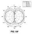 FIG. 18edepicts a graph, at 200, 500, 1000 and 2500 MHz, of the azimuth radiation pattern of an ultra-broadband antenna system according to a first embodiment of the present invention.