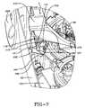Such asuitable brush assembly70 with the exception of the previously described hooks used to mount the brush assembly to theframe83 is taught in U.S. Pat. No. 5,867,857, the disclosure of which is incorporated herein by reference.Brush assembly70 is operated by a suitable gear train (or other known means), not shown, contained in transmission housing100 (FIG. 5). A suitable air turbine gear train is taught in U.S. Pat. No. 5,443,362, the disclosure of which is incorporated by reference. Thebrush assembly70 can be a horizontal brush roll driven by a belt secured to the suction motor or driven by a separate motor.