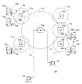 FIG. 1 shows an exemplary block diagram of awireless communications system100afor an asset management system according to the principles of the present invention, and more specifically, but without limitation, an asset management system for managingforklifts105a-105d(collectively105). The robustwireless communications system100aincludes at least one local monitor (LM)110a-110f(collectively110) having a wireless unit operative with a communication range defined by the cells111a-111f, respectively (collectively111), of various radii, and amanagement computer network115, configured in a central or distributed processing configuration, coupled to thelocal monitors110 via alocal communication link117. For the local monitor to communicate with themanagement computer network115, communication equipment (see,FIG. 2, units230a-230c) is utilized.