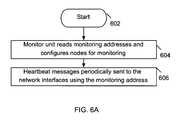 Instep606, monitoring messages (e.g., heartbeat messages, ping messages or some other type of messages) are periodically sent to the network interfaces using the monitoring addresses. In the preferred embodiment, each node periodically sends a monitoring message to a remote network interface on the same subnet via its monitoring address in accordance with the configuration set up instep604.