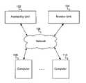 In some embodiments of the present invention, the computer systems ofavailability unit102,monitor unit104 andcomputers108 through110 include one or more Personal Computers (PCs) (e.g., IBM or compatible PC workstations running the Microsoft Windows operating system, Macintosh computers running the Mac OS operating system, or equivalent), Personal Digital Assistants (PDAs), game consoles or any other information processing devices. Additionally, in some embodiments, the computer systems ofavailability unit102,monitor unit104 andcomputers108 through110 include a server system (e.g., SUN Ultra workstations running the Solaris operating system or IBM RS/6000 workstations and servers running the AIX operating system). In preferred embodiments, theavailability unit102 and themonitor unit104 are processes running on one of thecomputers108 through110 of the cluster, or on one or more additional computers or servers that are connected to thenetwork106. The computer systems ofavailability unit102,monitor unit104 andcomputers108 through110 are described in greater detail below with reference toFIG. 7.