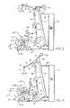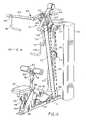 Exercise arm256 is pivotally mounted at the upper end of theupright strut289 so as to extend forward on opposite sides of the user support frame.Arm256 comprises a pair of parallel, generally V-shapedplates258 with lower ends pivotally mounted on opposite sides ofupright strut289 viapivot pin260, and a U-shaped exercise arm having acentral section262 secured to the apex ofplates258, and opposite handlearms264 projecting forwardly fromplates258 on opposite sides of the user support frame. A connectinglink265 is pivotally connected at one end to the upper end of the V-shapedplates258 viapivot266, and at the opposite end to the upper end of theupright244 of the user support frame viapivot268.