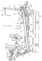 Theexercise arm18 comprises a generallyU-shaped member25 with anelongate member26 extending from the mid-point of the U-shaped member towards the weight stack and pivoted to the upper end ofstrut22 viapivot28 at a mid point in its length. Acounterweight30 is mounted at the end ofmember26. AU-shaped handle bar32 is pivoted atpivots34 to the ends of theU-shaped member25 so as to be suspended downwardly frombar25 for gripping by a user.